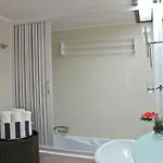 אזור של בלויי לילה מציע 1 חדרי שינה לשהייה בשביל 4 אורחים. דירת דירות Akisol Sesimbra Beach מצוידת עם חדר אמבטיה פרטי עם מגבות, מייבש שיער ווילונות אמבטיה.